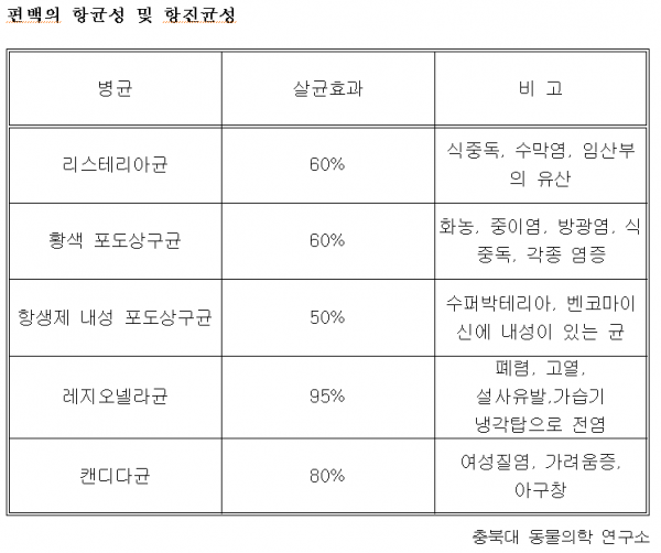 또, 충북대 동물의학 연구소의 실험 결과 편백은 각종 균에 대한 살균효과도 매우 뛰어난 것으로 밝혀졌습니다.